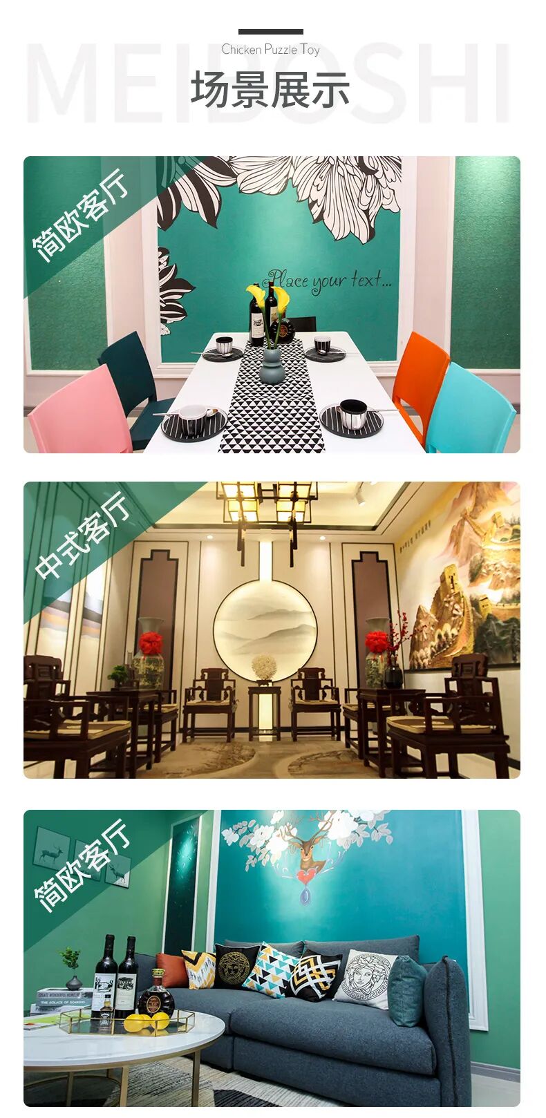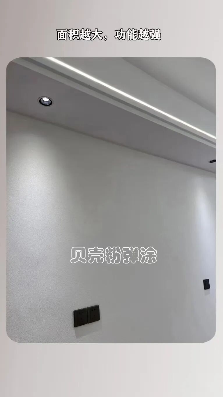 •肌理艺术自由度:通过弹涂、平涂等工艺,贝壳粉可呈现岩壁、丝绸、星空等30多种立体肌理效果。